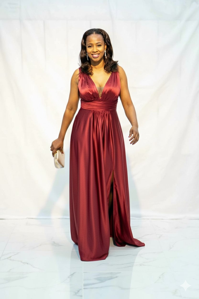 Vestido comprido vaséTecido: CEtimDecote: Decote "V"Parte de cima do vestido (peit