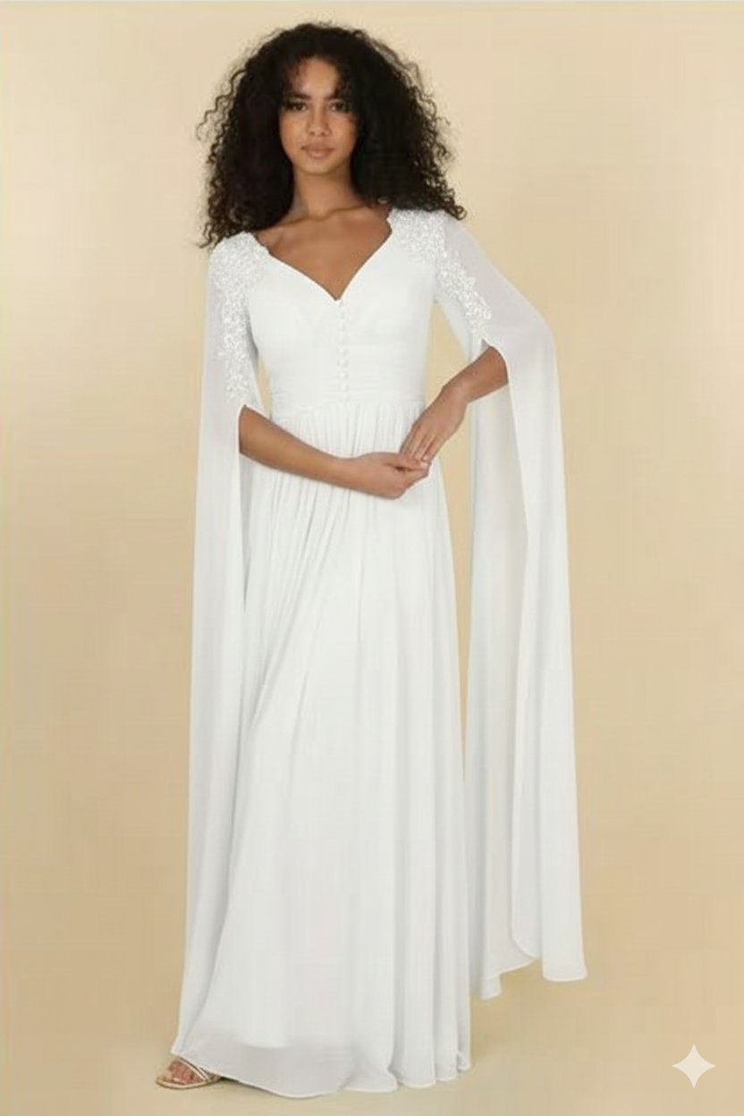 Vestido comprido vaséTecido: ChiffonDecote: Decote "V" com Renda, Pedras e Mangas c