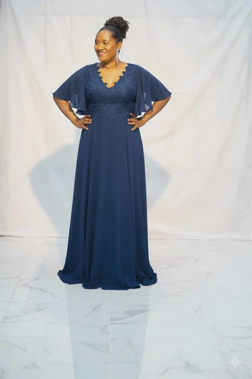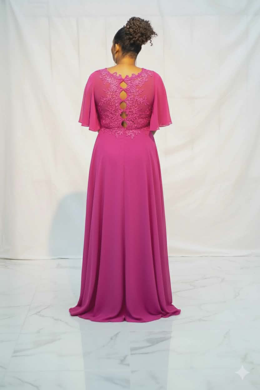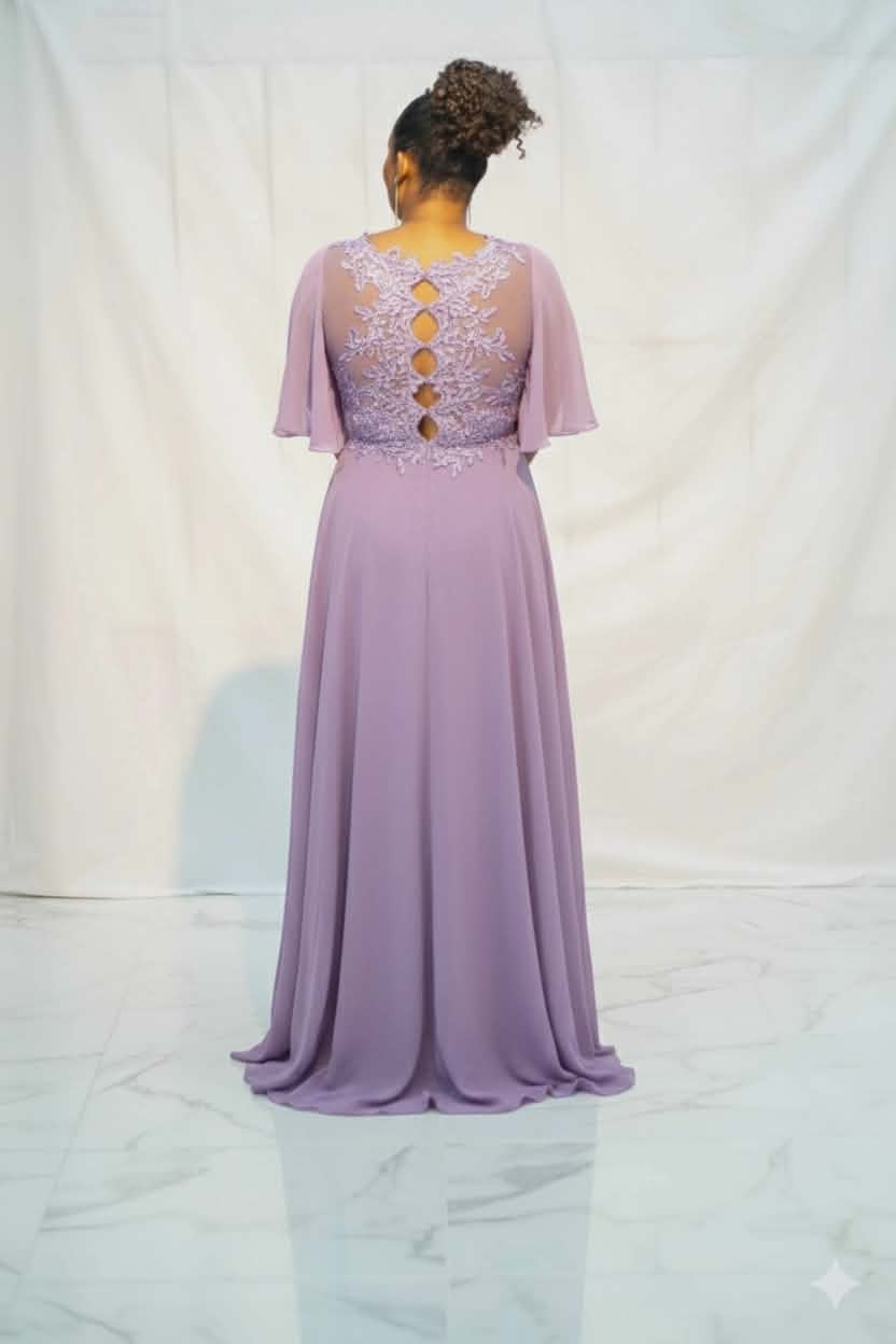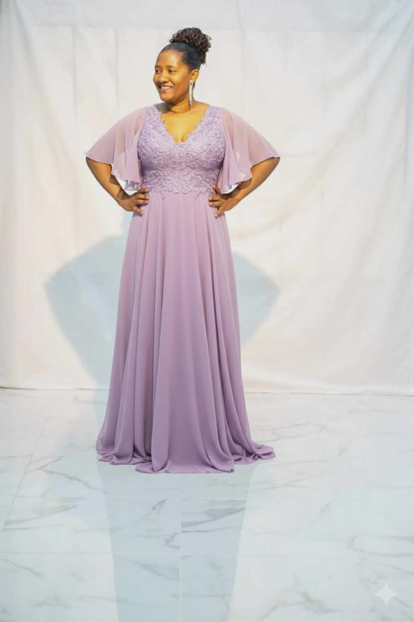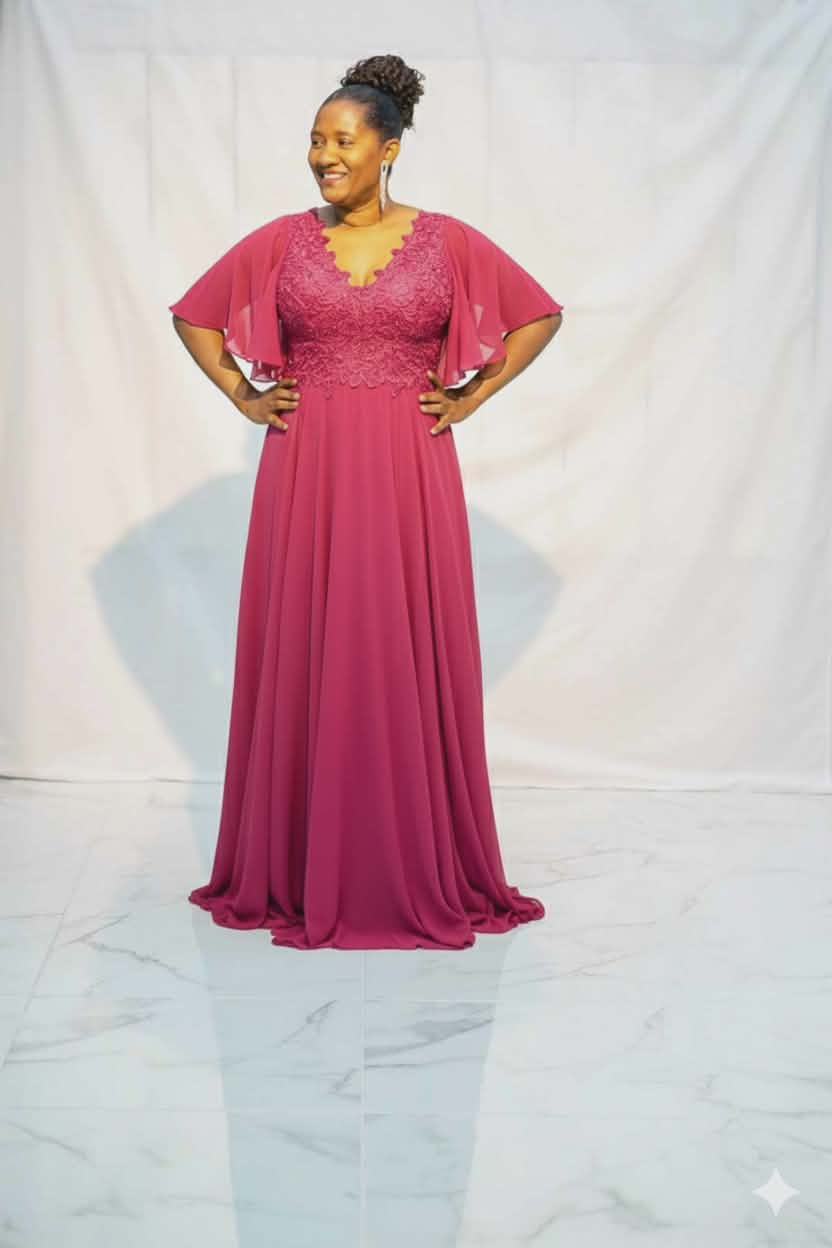 Vestido comprido vaséTecido: Chiffon e renda Decote: Decote "V"Parte de cima do ve
